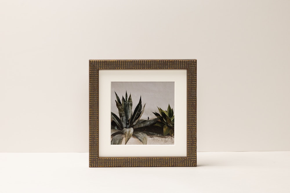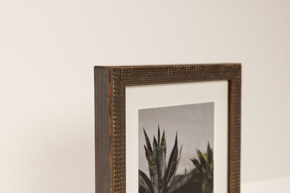 Bring WARMTH and SUBTLE TEXTURE to your walls with this rich brown frame, accented by REFINED gold dot detailing.